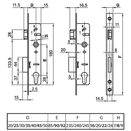 Europortál 45/92/16 csapdás cilinderlyukas55-ös portálzár