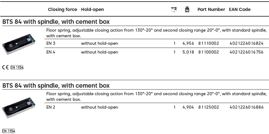 Padló csukó BTS/84V EN 0 fok Dormakaba