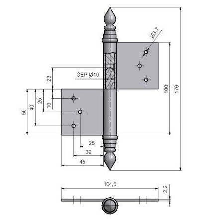 Történelmi ajtópánt festett fekete balos TKZ 100 UR 14L 94070240